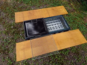 | *レンタルコンロ1卓(鉄板、網付き)¥1,000 炭1Kg¥400 | |
