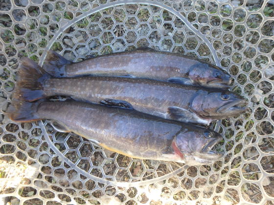 ルアーでヒットした良型イワナ 3匹ゲット!