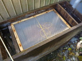 孵化盆に小分けして木箱の孵化装置に収容しました。