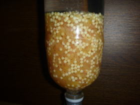 左のペットボトルには18日に新たに採卵した分を収容しました。