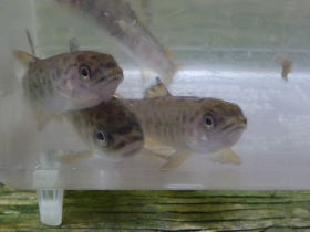 (イワナとブルックの稚魚は左のイケスに同居させました)。
